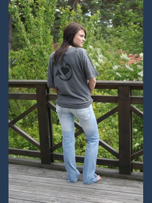 Den ribbade mudden runt hals, ärm och nederkant är på olika ställen "jackad" för att skapa det slitna uttrycket på plagget.