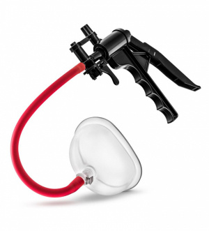 Temptasia Pussy Pump har en genomskinlig kopp som placeras över vaginan som gör det möjligt att se hur underlivet blodfyllds i takt med att trycket ökar. Pumphandtaget är av pistolgreppstyp och gör användningen effektiv och bekväm. Ventil på handtaget för att snabbt kunna släppa på vakuumet.