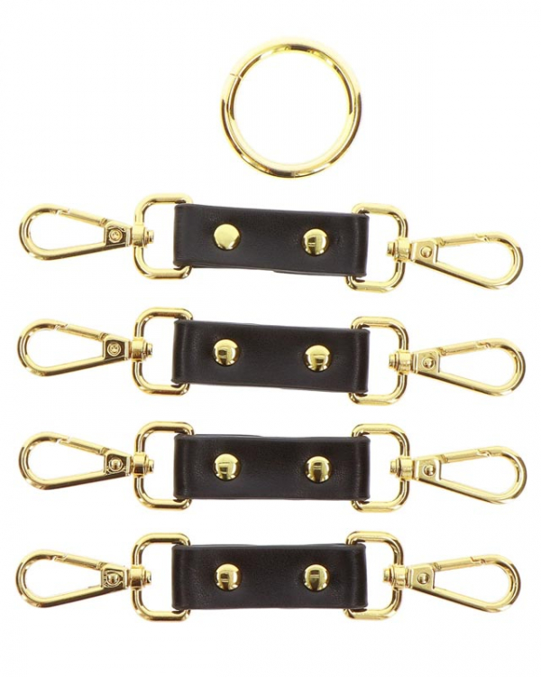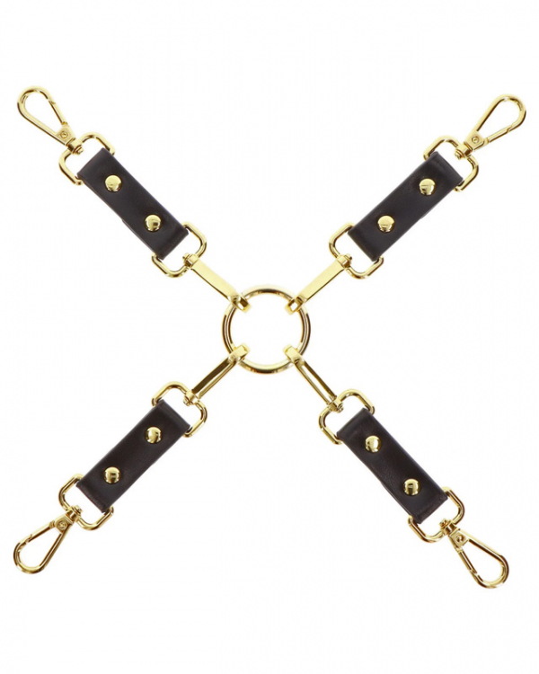 Vogue Hogtie inbjuder till förförisk bondage där händer och fötter kopplas ihop för en komplett känsla av överlämning. Den exklusiva designen i veganskt läder och nickelfri guldig metall gör upplevelsen både lyxig och visuellt tilltalande.
