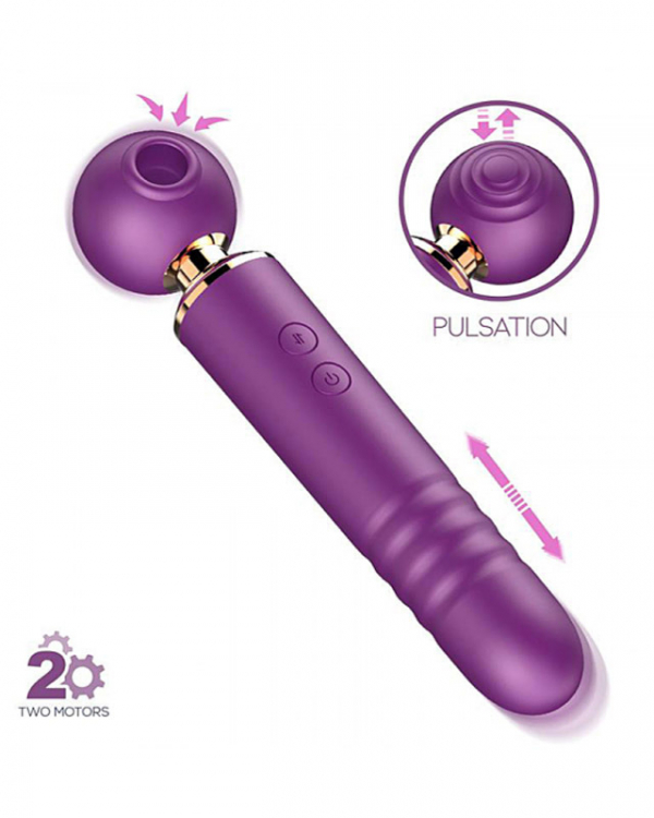 Wand 3 in 1 Action är ett multiverktyg med sina tre olika funktioner där de alla skiljer sig åt. På ena sidan av huvudet hittar du ett munstycke som ger stimulans genom lufttryck och på andra sidan har den energiskt pulserande vibrationer. Lämpar sig ypperligt för klitoris, g-punkt, bröstvårtor eller annat känsligt ställe. Vill du i stället njuta av penetrering så kan den stötande rörelsen i skaftet komma väl till pass!
