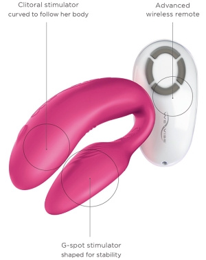 We vibe 4 plus har liksom sin föregångare We vibe 4 en kompakt och behändig modell. Den böjda klitorisstimulatorn följer kvinnans kropp och vilar försiktigt mellan blygdläpparna, medan den styva mittsektionen garanterar en perfekt passform. G-punktsstimulatorn hamnar bakom bäckenben för ökad stabilitet och komfort för båda parter.